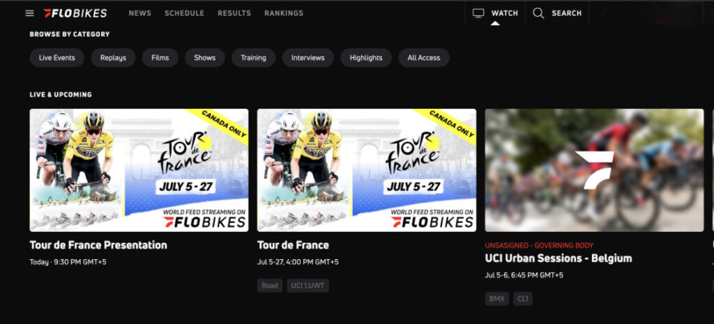 • FloBikes is the official streaming service in Canada, but it’s a paid subscription.