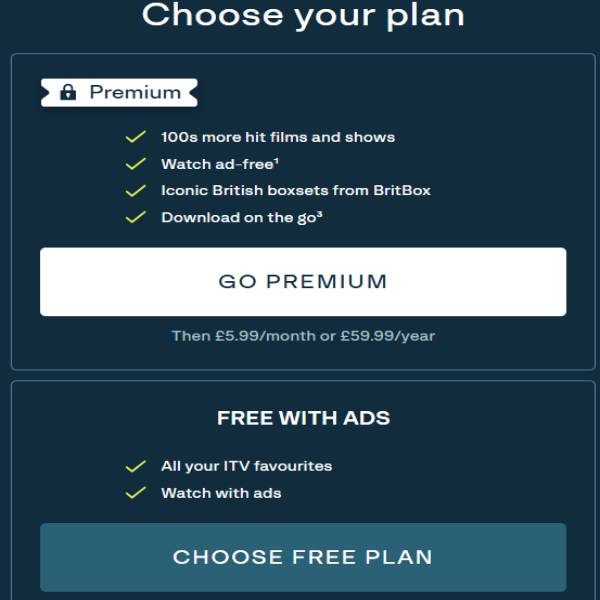Step 9: Choose your plan free or Premium to stream ITVX online.